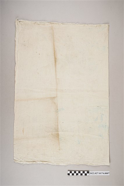 國防部福利總處監製軍用麵粉袋係以長幅粗棉布對折之後,再將其中一側短邊與長邊縫合成袋狀。麵粉袋作單面雙色印刷,印刷略為褪色,上端以藍色印有國防部標誌,中央作國徽標誌,外圍以刀槍、船錨、鷹翅為三軍代表,上端則印有梅花,左右側以嘉禾包圍成框。版面中央以紅色印有「軍用麵粉」、藍字「(淨重廿二公斤)」與紅字「嚴禁出售」字樣。版面底緣則印有「國防部福利總處監製」、「大裕產業工廠股份有限公司承製」與「中華民國 年 月 旬出廠」。