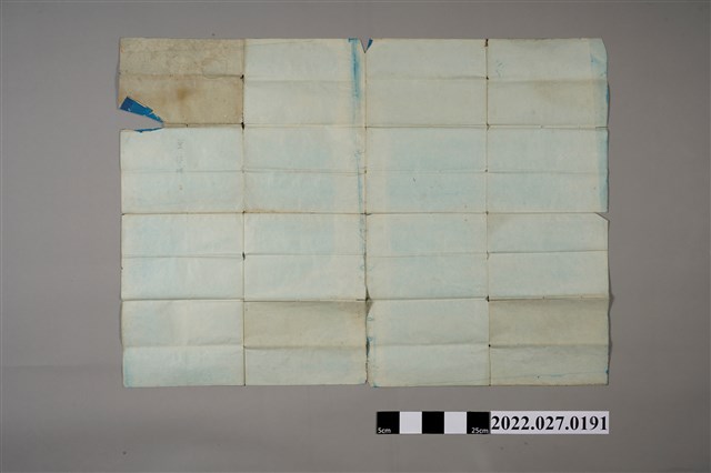 地籍圖測繪資料合併而成的庄圖〈新社圖〉。屬藍曬圖形式,本圖是自地籍圖正本(市街六百分一,鄉村一千二百分一)複寫、抄繪而來,內容以土地位置、形狀、編號、地目(建地、田地、旱地、林地、道路等)為主、另有行政邊界(郡市、街庄、大字、町目)與名稱。無地形描繪,無經緯度。功能為地籍圖,記有每塊土地之地目、地番。比例尺為三千分之一。