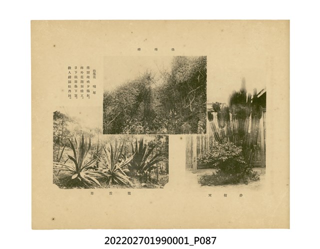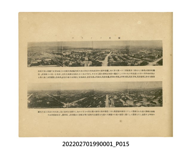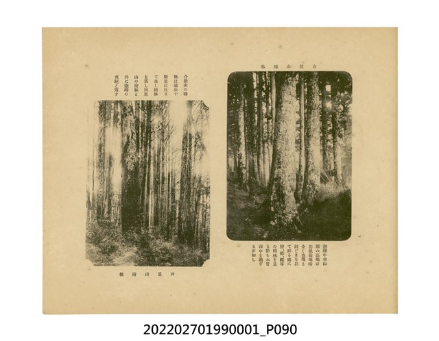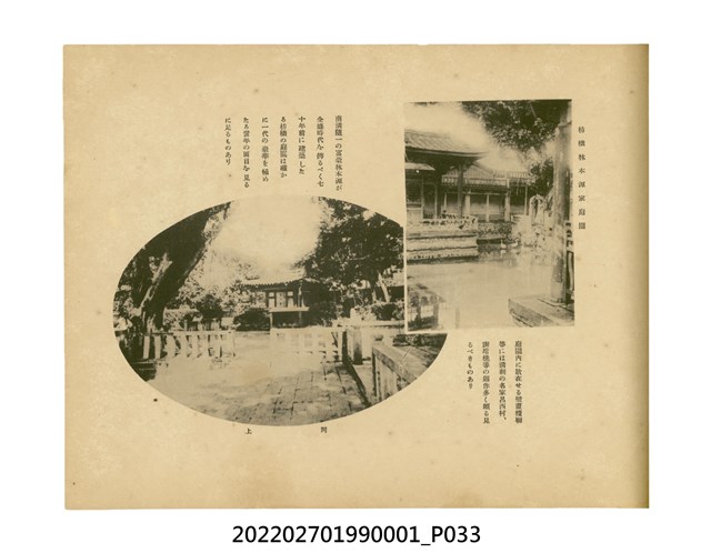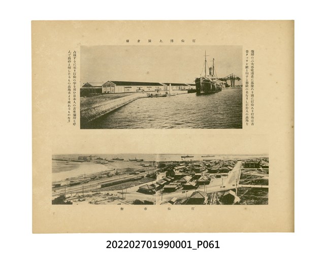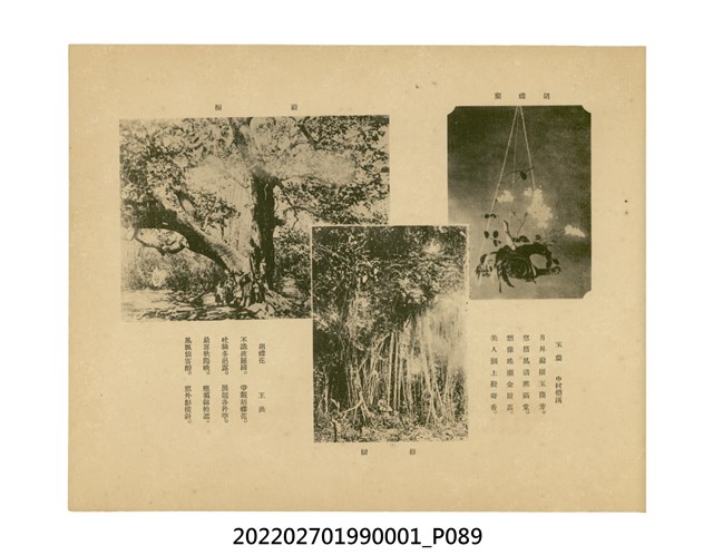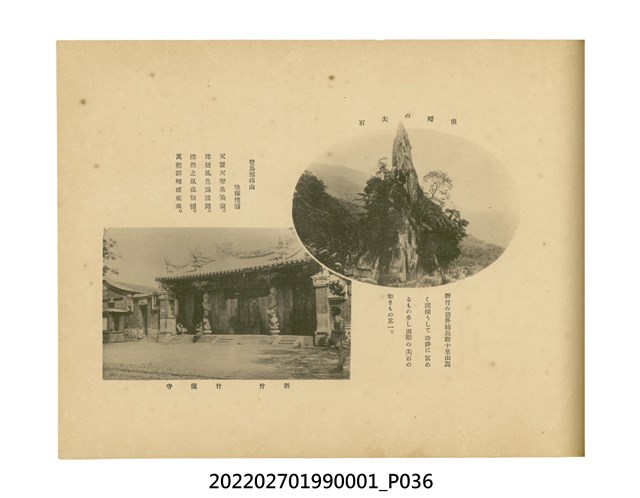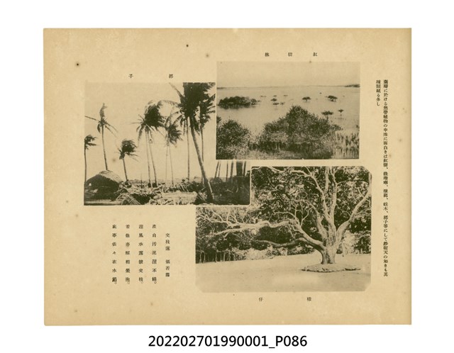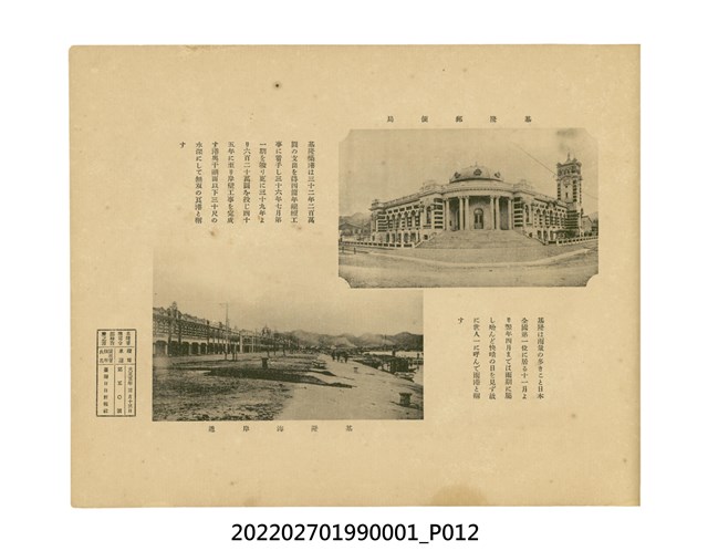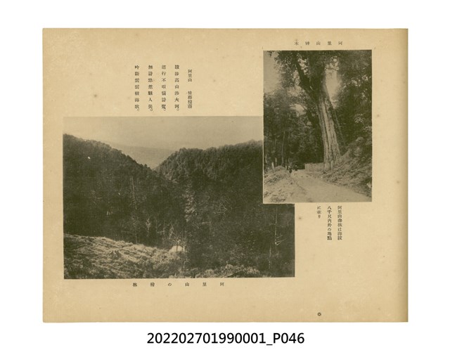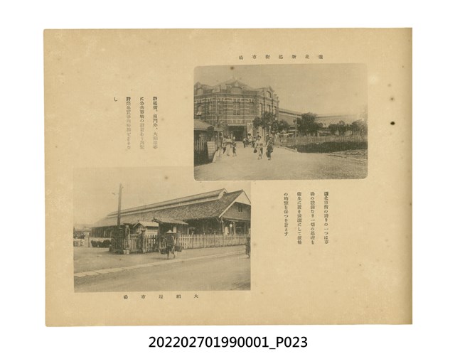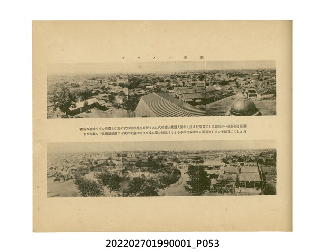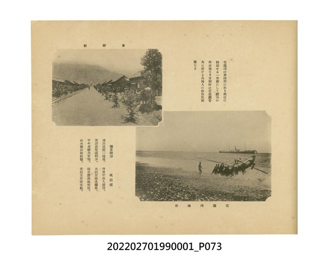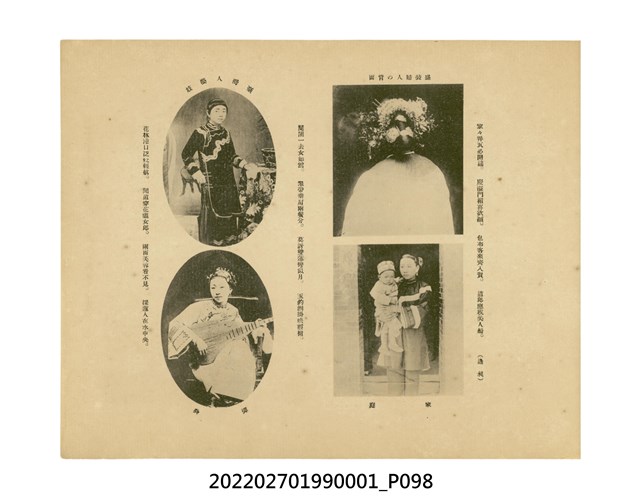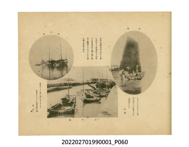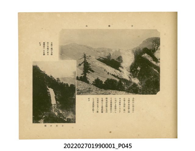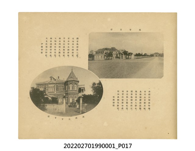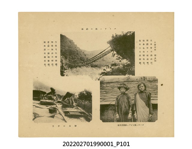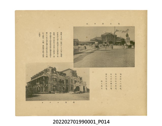 本件是臺灣總督府民政部發行的《記念臺灣寫真帖》,共兩本。皆採橫式印刷,線裝,一本以米色為底,上以草體書寫書名;一本以灰色花紋圖案為底。內頁封面有手寫之「記念臺灣寫真帖」字樣。照片之前,有總督安東貞美的題字,以及民政長官內田嘉吉的文章。收錄上百張照片,按地理位置由北部而南部、由西部到東部編排,主題包括臺灣風景、街道、建設、產業及原住民族等。每張照片附有題名,部分有解說。最末是版權頁,上載印刷、發行資訊。