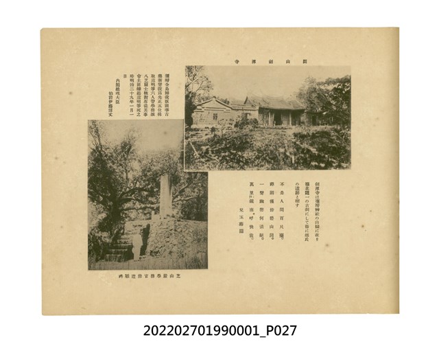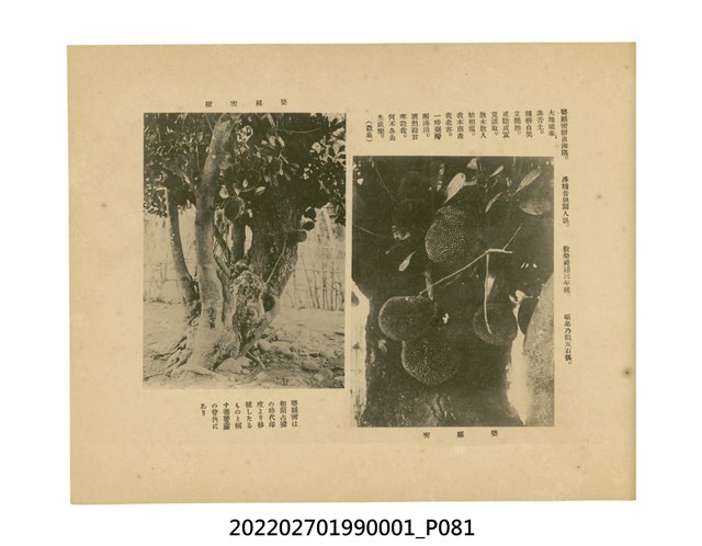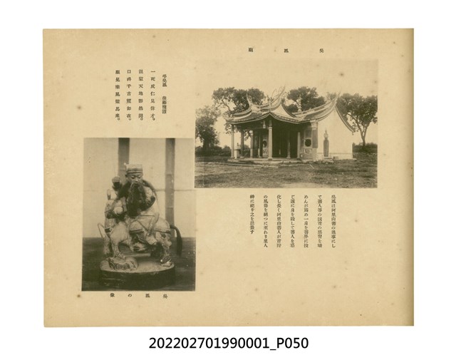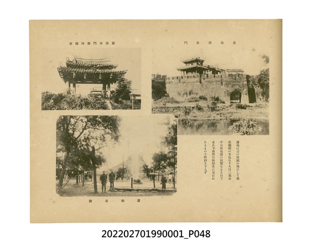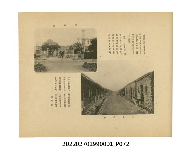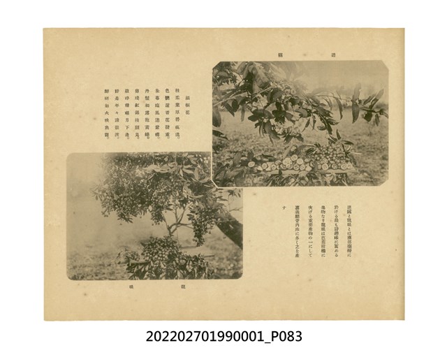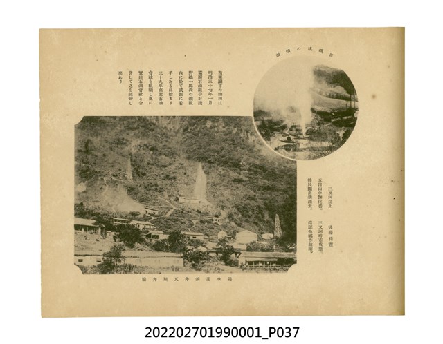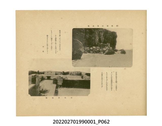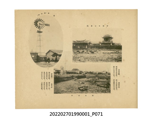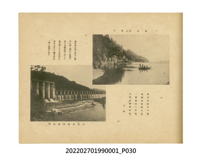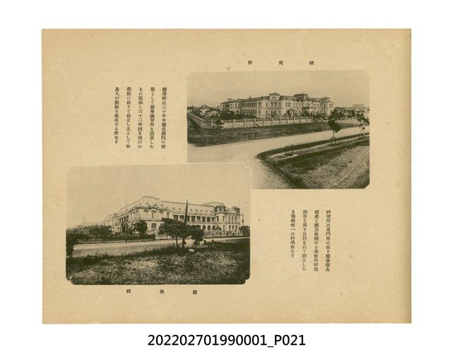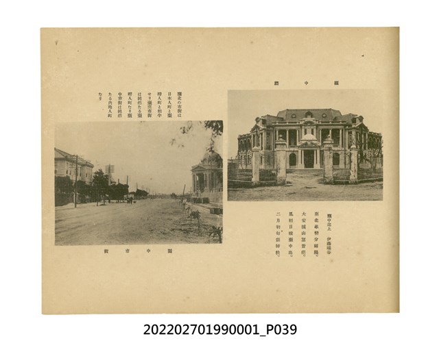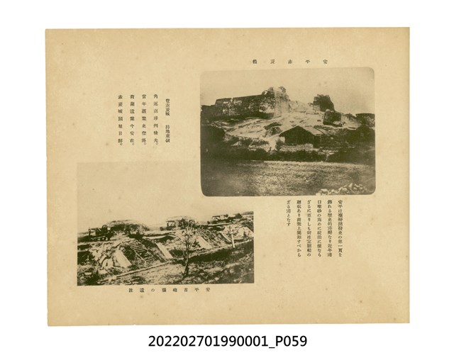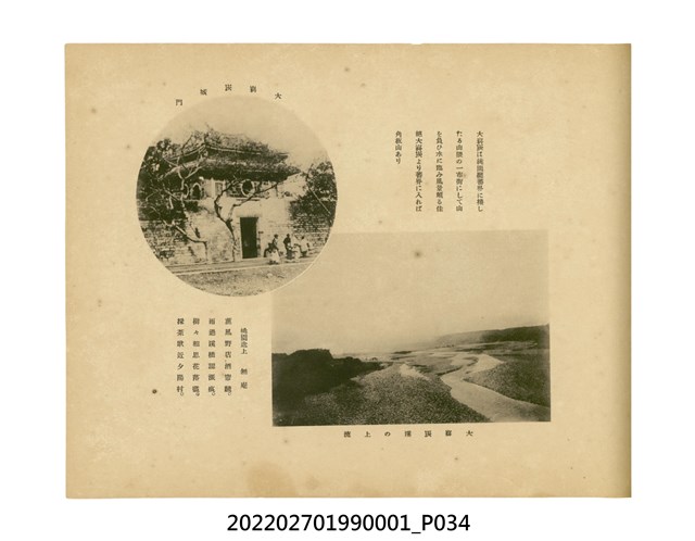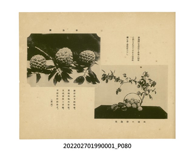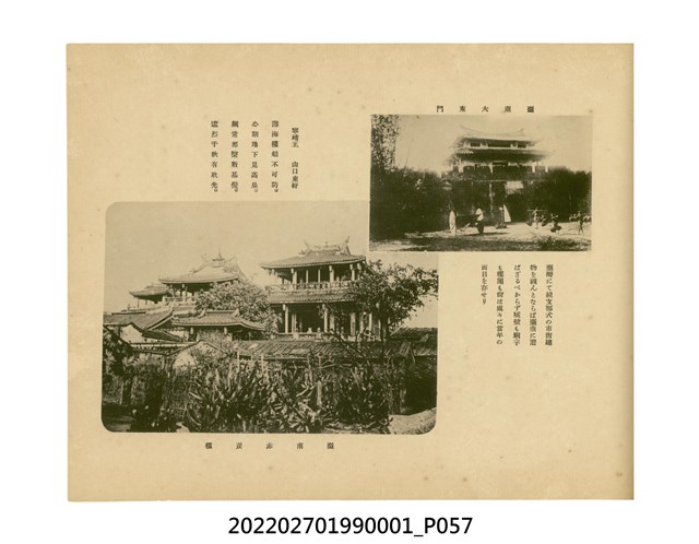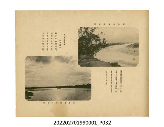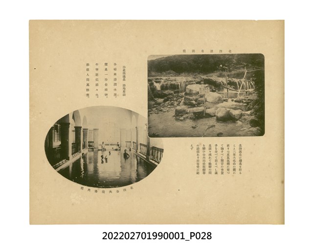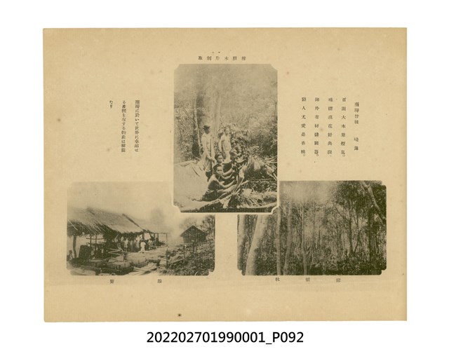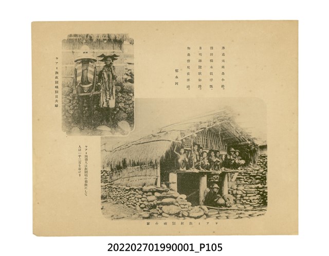 本件是臺灣總督府民政部發行的《記念臺灣寫真帖》,共兩本。皆採橫式印刷,線裝,一本以米色為底,上以草體書寫書名;一本以灰色花紋圖案為底。內頁封面有手寫之「記念臺灣寫真帖」字樣。照片之前,有總督安東貞美的題字,以及民政長官內田嘉吉的文章。收錄上百張照片,按地理位置由北部而南部、由西部到東部編排,主題包括臺灣風景、街道、建設、產業及原住民族等。每張照片附有題名,部分有解說。最末是版權頁,上載印刷、發行資訊。