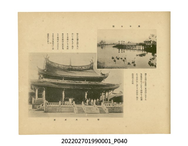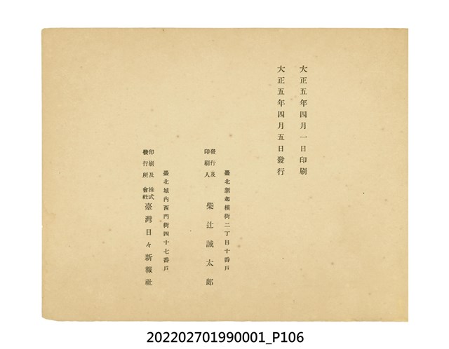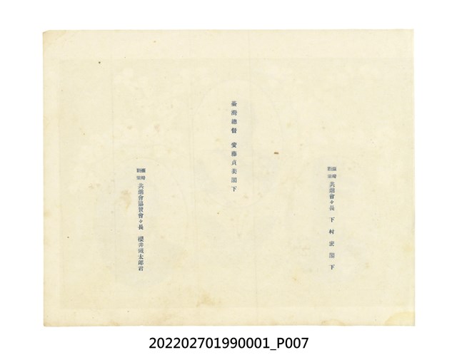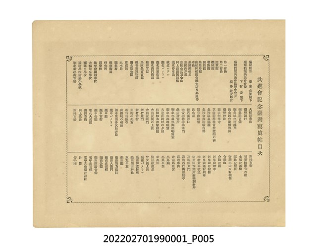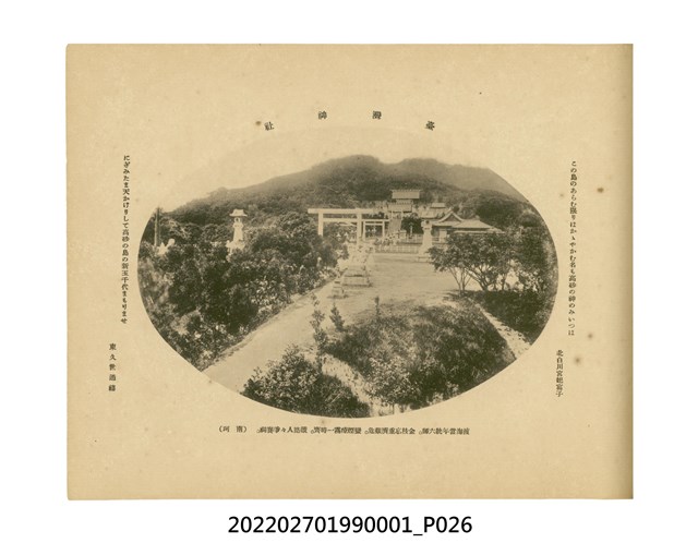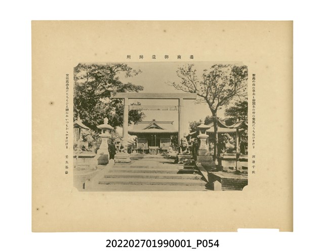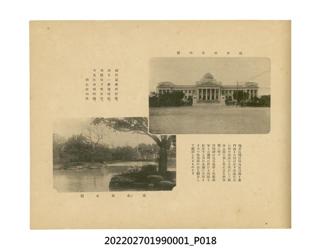 臺灣總督府發行本物件目前,在宣揚統治臺灣20年來的成果。次年,配合「臺灣勸業共進會」 的舉行,更名為《共進會記念臺灣寫真帖》,再次發行。
