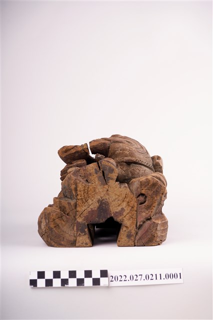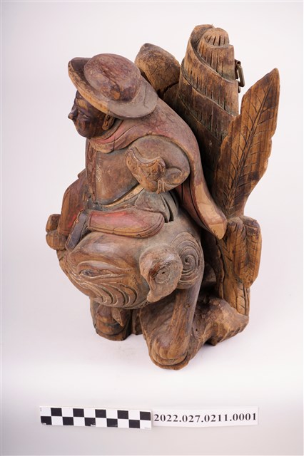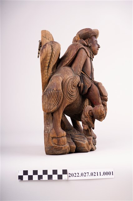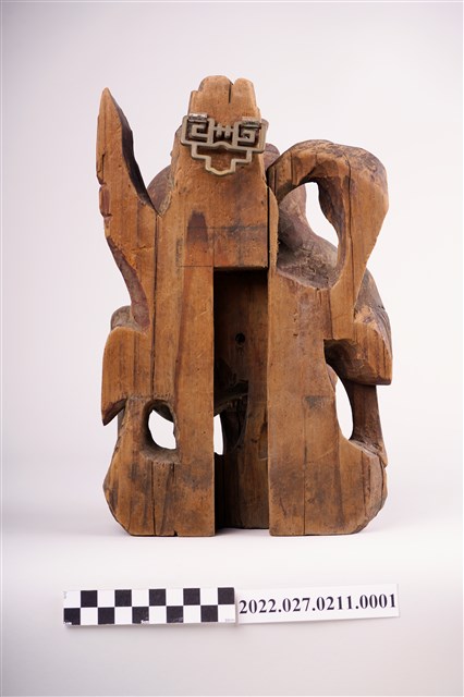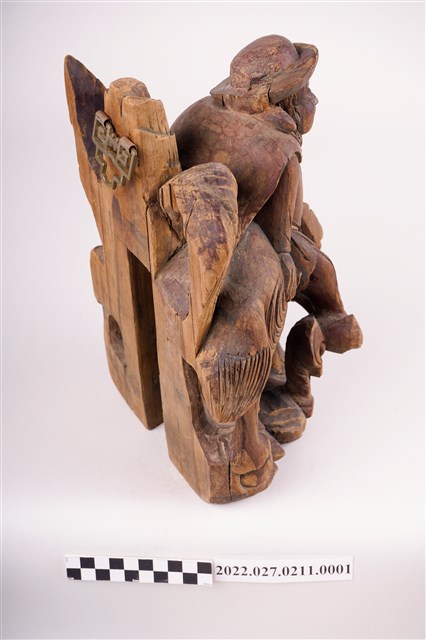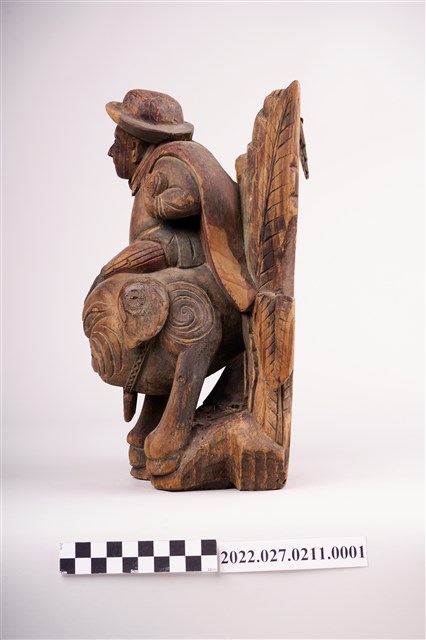 1. 此批物件多數為華人寺廟入口上方廟角兩側常見的人物抬屋角裝飾,俗稱「憨番抬厝角」、「憨番抬廟角」。呈現漢人文化中對於外族人的想像與形象呈現。另外當中也有一對人形承燭盤造形燭臺,是西洋人造型,讓人聯想為荷蘭人。以及還有一對人物負重燭臺,這類燭臺有研究者認為受到18世紀以降的清朝皇室內洋人托寶銅胎琺瑯器一類文物之影響。另有繪有臺灣建築與鄉土風情彩繪三隻芭蕉扇 ,早期為用線香熏燒出圖案,此為手繪。