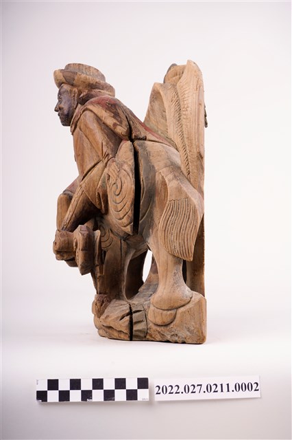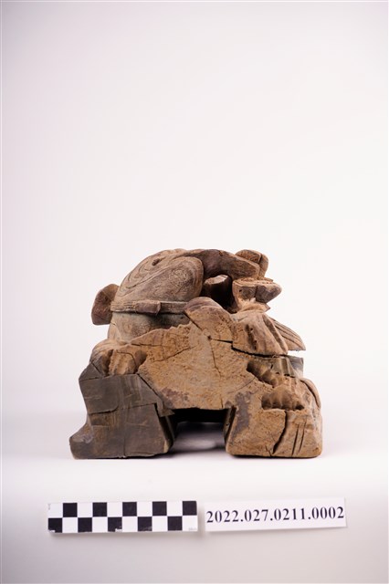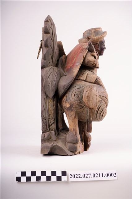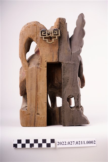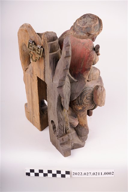 1. 此批物件多數為華人寺廟入口上方廟角兩側常見的人物抬屋角裝飾,俗稱「憨番抬厝角」、「憨番抬廟角」。呈現漢人文化中對於外族人的想像與形象呈現。另外當中也有一對人形承燭盤造形燭臺,是西洋人造型,讓人聯想為荷蘭人。以及還有一對人物負重燭臺,這類燭臺有研究者認為受到18世紀以降的清朝皇室內洋人托寶銅胎琺瑯器一類文物之影響。另有繪有臺灣建築與鄉土風情彩繪三隻芭蕉扇 ,早期為用線香熏燒出圖案,此為手繪。