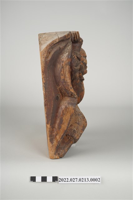 應為廟宇中所見人物負重木雕構件。