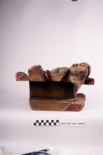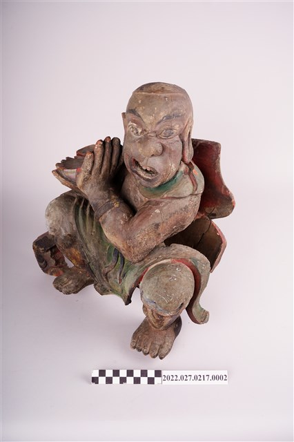 應為廟宇中所見人物負重木雕構件。
