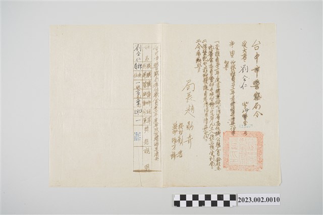 2023.002.0010 民國52年5月27日劉全仁台中市警察局令