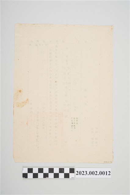 1.本物件為臺灣省警務處(今),主要內容為查核劉全仁先生民國49年考績案,業經銓敍部致臺灣省政府審會50.4.26臺甄三字第3165號函副本核定處,茲錄詳情於後,今希知照,總分為77.35分,核定獎懲為獎金,依原擬給予半個月俸額之一次獎金,發文字號為警人字第4106號,發文日期民國50年5月2日,蓋有臺灣省警務處紅色官印,寫有處長郭永、校對廖耀輝及監印魏毓河,整個物件保存良好,唯有明顯泛黃現象。2.公務人員之俸給分為本俸與年功俸;本俸係指各職等人員依法應領取之基本給與,年功俸係指各職等高於本俸最高俸級之給與。3.劉全仁,民國9年(1920)生,原籍河北省雄縣。民國39年(1950)39 7月至 47 年 (1958)2月擔任臺灣大學駐衛警察隊隊長,期間於民國42年(1953)取得公務員高等考試警察行政人員任用資格,而後歷任臺中市警察局課員、基隆市警察局秘書、經濟課課長、刑事課課長、高雄市警察局分局長、臺東縣成功分局局長。劉全仁,民國9年(1920)生,原籍河北省雄縣。民國39年(1950)39 7月至 47 年 (1958)2月擔任臺灣大學駐衛警察隊隊長,期間於民國42年(1953)取得公務員高等考試警察行政人員任用資格,而後歷任臺中市警察局課員、基隆市警察局秘書、經濟課課長、刑事課課長、高雄市警察局分局長、臺東縣成功分局局長。
