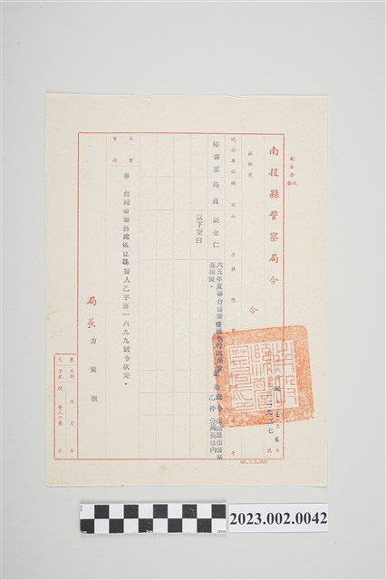 2023.002.0042 民國66年1月6日劉全仁南投縣警察局令