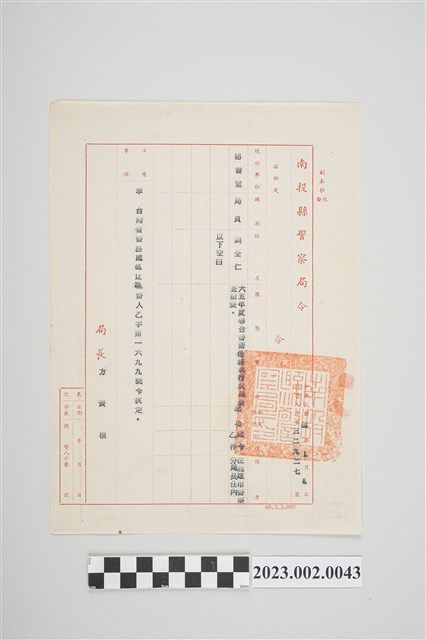 2023.002.0043 民國66年1月6日劉全仁南投縣警察局令