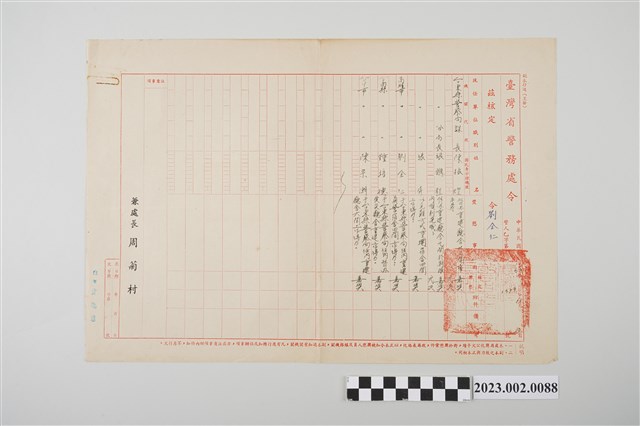 2023.002.0088 民國63年11月18日劉全仁臺灣省警務處令