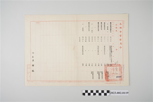 2023.002.0119 民國64年10月7日劉全仁高雄市警察局令