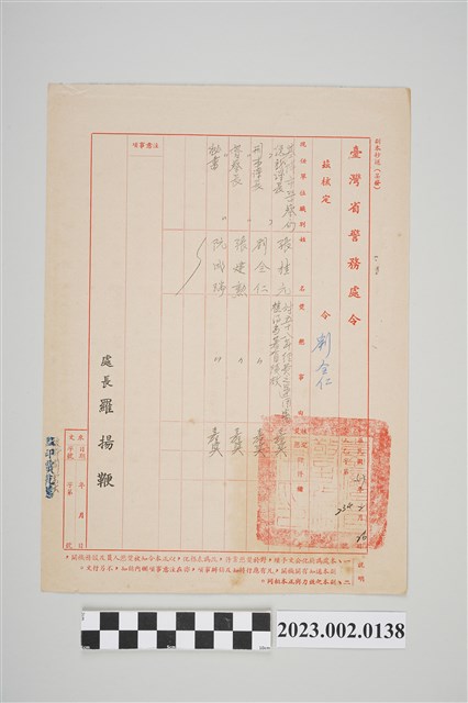 2023.002.0138 民國59年2月26日劉全仁臺灣省警務處令
