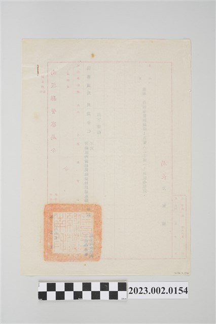 1.本物件為南投縣警察局令副本抄送,主要內容為劉全仁之獎懲案,案奉 臺灣省警務處66.1.26警人乙字第175號令核定。現任單位:秘書室局員,獎懲事由:對轄區內黃福男職業性賭場取締不力,核定獎勵:申誡,備考:在高雄市警察局分局長任內,發文字號為投警人字第2967號,發文日期民國66年2月2日,蓋有南投縣警察局紅色官印,局長方賢樵,整體物件保存良好,唯有明顯泛黃現象。2.公務人員之俸給分為本俸與年功俸;本俸係指各職等人員依法應領取之基本給與,年功俸係指各職等高於本俸最高俸級之給與。警察人員平時考核獎懲種類,獎勵分為嘉獎、記功、記大功,懲處分為申誡、記過、記大過。3.劉全仁,民國9年(1920)生,原籍河北省雄縣。民國39年(1950)39 7月至 47 年 (1958)2月擔任臺灣大學駐衛警察隊隊長,期間於民國42年(1953)取得公務員高等考試警察行政人員任用資格,而後歷任臺中市警察局課員、基隆市警察局秘書、經濟課課長、刑事課課長、高雄市警察局分局長、臺東縣成功分局局長。