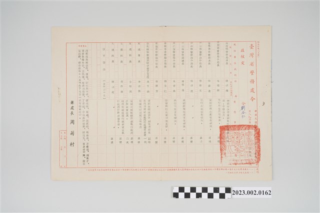 2023.002.0162 民國63年3月28日劉全仁臺灣省警務處令