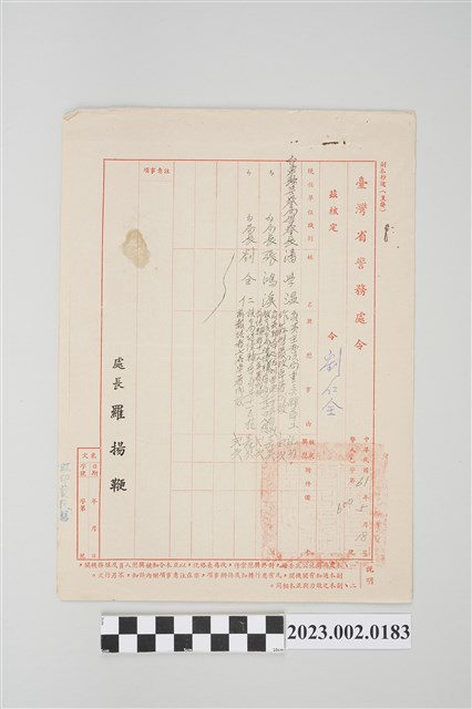 2023.002.0183 民國61年5月18日劉全仁臺灣省警務處令