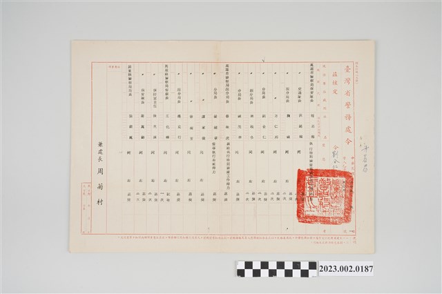 2023.002.0187 民國63年5月1日劉全仁臺灣省警務處令