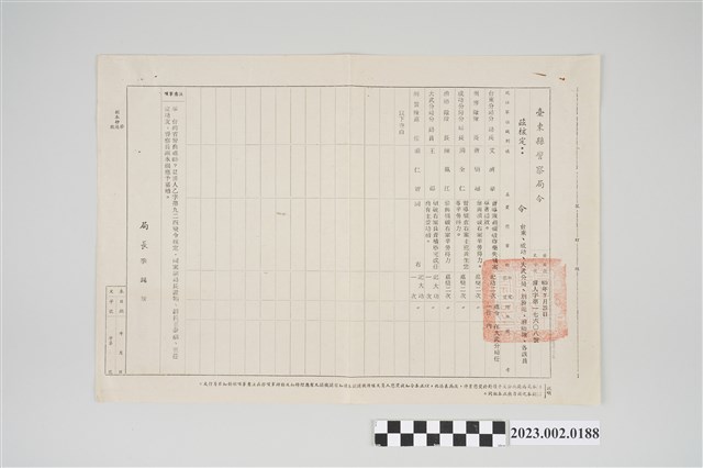 2023.002.0188 民國61年7月29日劉全仁臺東縣警察局令