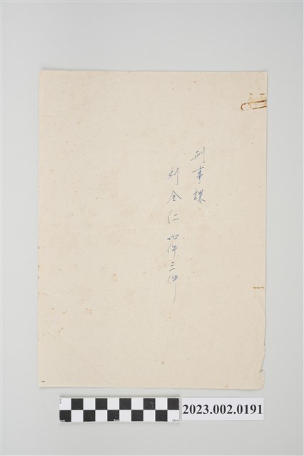 2023.002.0191 「刑事課劉全仁証件三件」文書封面
