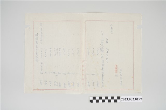 1.本物件為劉全仁報請專案考績資料,用南投縣警察局之信箋手寫之文字,為劉全仁民國65年3月27日至10月8日期間,臺灣省警察處務處令之發文字號及核定獎懲種類,以上計記功六次嘉獎八次共處令13件,送交人事室,蓋有局員劉全仁之紅色印章及寫有日期65年12月23日,整體物件保存良好,唯有明顯泛黃現象。2.公務人員之俸給分為本俸與年功俸;本俸係指各職等人員依法應領取之基本給與,年功俸係指各職等高於本俸最高俸級之給與。警察人員平時考核獎懲種類,獎勵分為嘉獎、記功、記大功,懲處分為申誡、記過、記大過。3.劉全仁,民國9年(1920)生,原籍河北省雄縣。民國39年(1950)39 7月至 47 年 (1958)2月擔任臺灣大學駐衛警察隊隊長,期間於民國42年(1953)取得公務員高等考試警察行政人員任用資格,而後歷任臺中市警察局課員、基隆市警察局秘書、經濟課課長、刑事課課長、高雄市警察局分局長、臺東縣成功分局局長、高雄市警察局分局長、臺東縣成功分局局長。