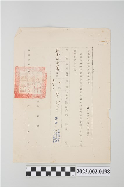 2023.002.0198 民國61年4月26日劉全仁台東縣警察局考績通知書