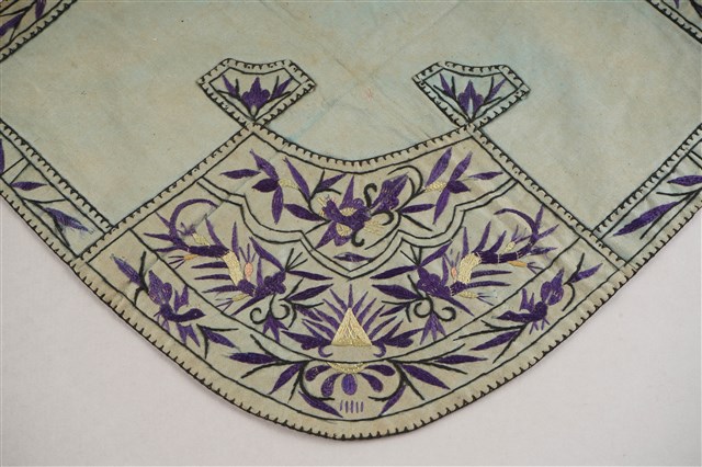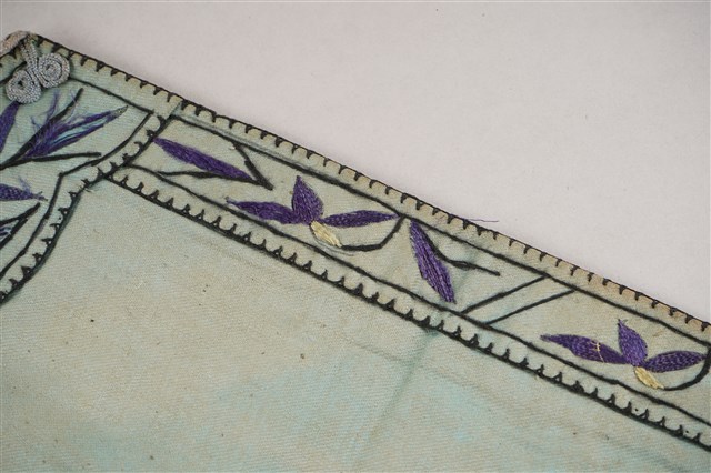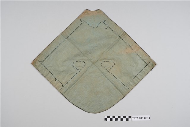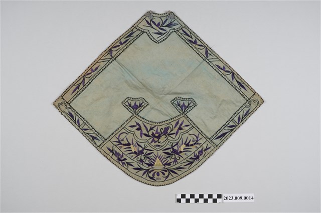 2023.009.0014 淺藍色底彩色繡竹葉紋菱形肚兜