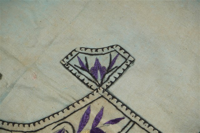 淺藍色底彩色繡竹葉紋菱形肚兜
