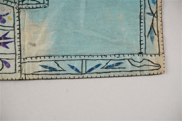 2023.009.0018 水藍底彩繡花卉紋菱形肚兜