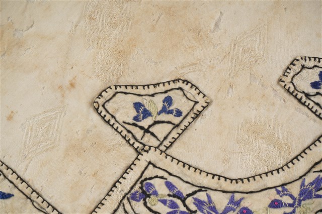2023.009.0026 米白底彩繡花卉紋菱形肚兜
