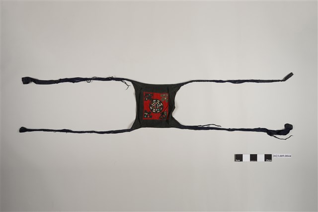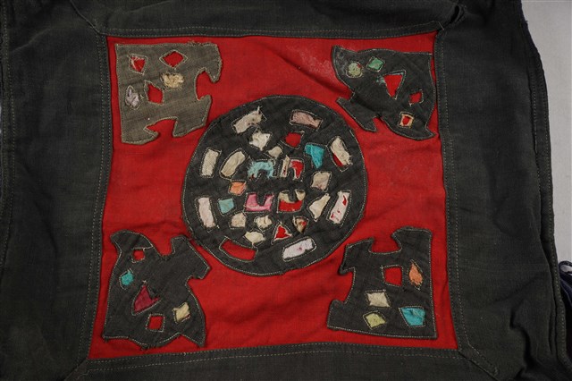 2023.009.0044 紅底黑邊拼布花紋包巾