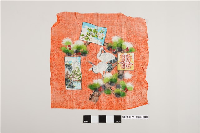 2023.009.0048.0002 橘底白鶴囍字布巾(2)