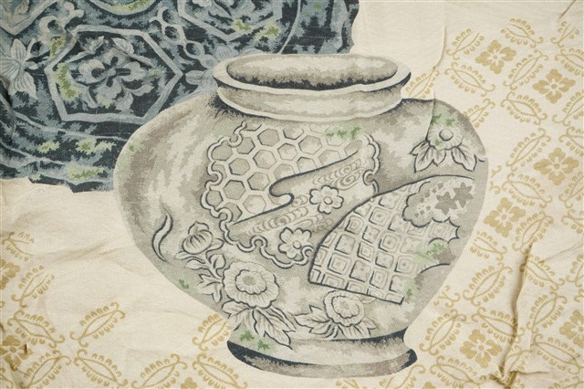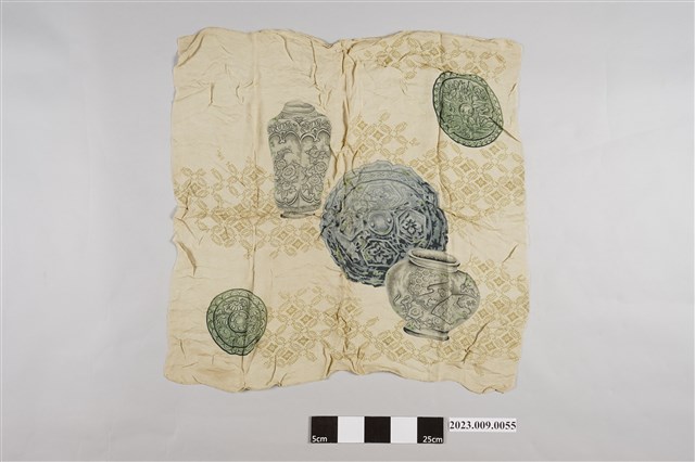 2023.009.0055 米黃底色器皿紋飾布巾