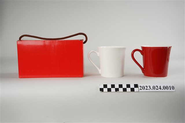 此為臺灣省諮議所發行之紀念馬克杯對杯,作白瓷烤花,共有白地紅花及白地紅花兩款,所見杯身印有複刻「臺灣省參議會關防」章及「臺灣省諮議會」字樣,應為省諮議會所發行之紀念品。
