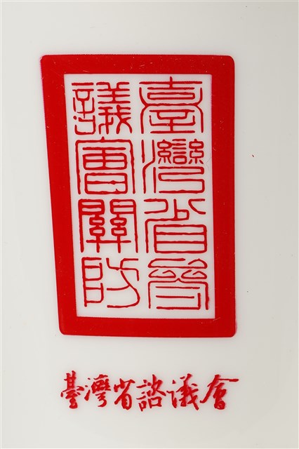 此為臺灣省諮議所發行之紀念馬克杯對杯,作白瓷烤花,共有白地紅花及白地紅花兩款,所見杯身印有複刻「臺灣省參議會關防」章及「臺灣省諮議會」字樣,應為省諮議會所發行之紀念品。