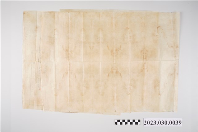 為昭和時期員林郡溪湖庄汴頭字大竹圍徐石慶文件信封,信封內文件為員林郡溪湖庄溪湖實地測量圖、員林郡溪湖庄大突字北勢尾地圖謄本、員林郡溪湖庄阿媽厝字三塊厝地圖謄本、員林郡員林街東山字地圖謄本,皆為時任臺中州知事日下辰太核發,該文件因收納於信封內折痕較多、整體泛黃、有斑點與皺褶。