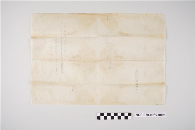 為昭和時期員林郡溪湖庄汴頭字大竹圍徐石慶文件信封,信封內文件為員林郡溪湖庄溪湖實地測量圖、員林郡溪湖庄大突字北勢尾地圖謄本、員林郡溪湖庄阿媽厝字三塊厝地圖謄本、員林郡員林街東山字地圖謄本,皆為時任臺中州知事日下辰太核發,該文件因收納於信封內折痕較多、整體泛黃、有斑點與皺褶。