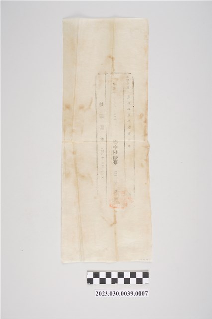 為昭和時期員林郡溪湖庄汴頭字大竹圍徐石慶文件信封,信封內文件為員林郡溪湖庄溪湖實地測量圖、員林郡溪湖庄大突字北勢尾地圖謄本、員林郡溪湖庄阿媽厝字三塊厝地圖謄本、員林郡員林街東山字地圖謄本,皆為時任臺中州知事日下辰太核發,該文件因收納於信封內折痕較多、整體泛黃、有斑點與皺褶。