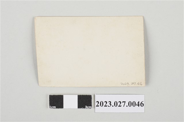 為徐家文物人物群體黑白照片,圖中較年長孩童背年幼孩童。後方有戴斗笠帽與穿長袍馬褂之民眾,拍攝地點為一建築物前,日常一景之紀錄照片,該照片內容模糊。有折痕與白點痕跡。