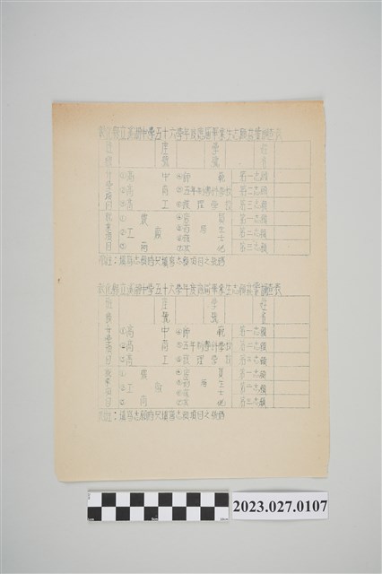 2023.027.0107 1968年彰化縣立溪湖中學五十六學年度應屆畢業生志願升學就業調查表