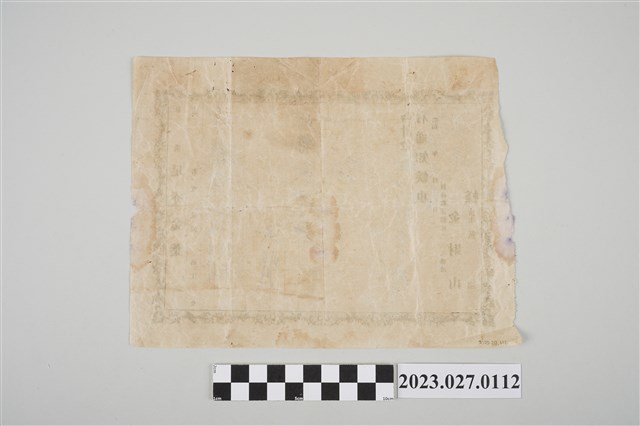 為昭和3年6月24日員林郡溪湖庄二三九番地金財山收據,最左邊寫著足赤金葉,其內容(品項)應為作?一條26勺14.3円(以蘇州碼紀錄),合計36円30錢,並於最後附上時間、地址與店主黃超等字樣。整體有摺痕與破損、髒汙等痕跡。