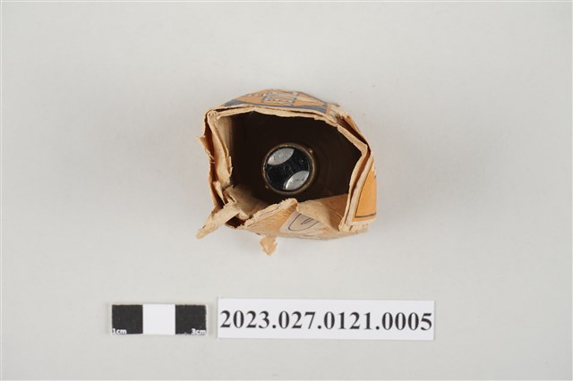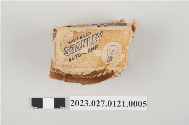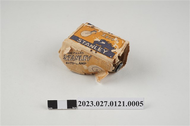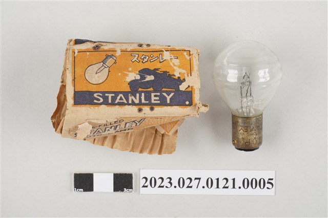 為35釐米放映機,含外盒。盒子為木製,紅色,上頭開蓋有提把,盒子連接處皆為鐵製鎖器,整體多有髒污傷痕與生鏽痕跡。盒子裡除了綠色放映機本身外,還有其相關零件與自動車用電球、燈泡等物件。