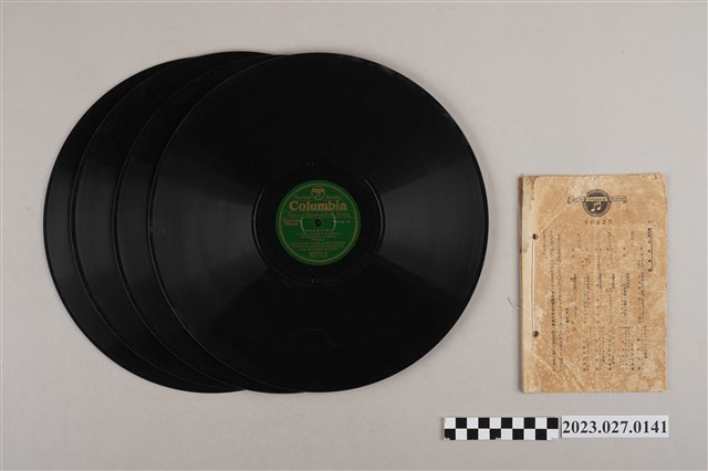 為世界著名音樂家代表作品集套裝古典樂,全套12吋蟲膠唱片共4張,除了唱片外,該套裝外觀發霉破損,內裡邊緣也有破損髒污現象,並還有一份由日文書寫的山田耕筰選輯「十二樂聖こその代表曲」,封面與封底內頁有山田耕筰音樂介紹,內頁每張唱片另有用分隔夾層包覆,並且可以從包裝透明處得知該張唱片內容,如某一唱片有「SYMPHONY NO.4」等資訊。