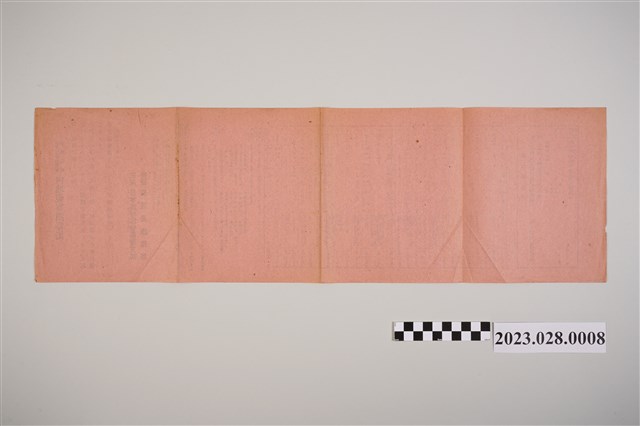 1.本物件為紀元2600年聖地巡拜內地視察團募表,為1長方型紙張,最旁邊印有「紀元2600年聖地巡拜內地視察團募集」字樣,再來則為手繪表格約30格,表格寫有日期、出發時間、地點、到達時間、搭乘工具、住宿方式等,物件最右邊有參加申請書,最前面則為主辦單位日本旅行協會臺灣支部。2.日治時期因臺灣總督府推動觀光事業,加上交通日趨便利,刺激了觀光旅遊活動的發展,初期只有高官權貴能享受,隨著時間演進,觀光產業的效益與規模才逐漸擴及民間。1945年日本殖民者離開臺灣,但他們留下的交通與觀光建設,成為臺灣觀光業的珍貴資產。
