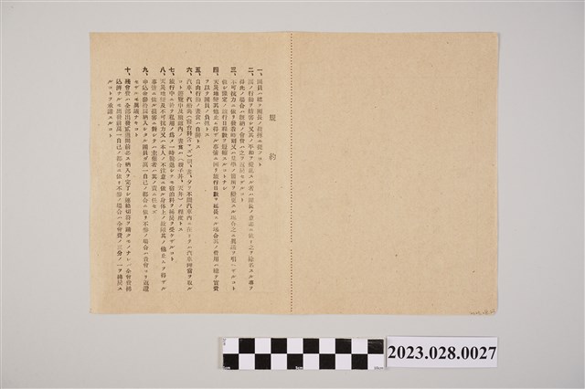1.本物件為參加申請書與領收證,為1張長方形紙張,分為兩個部分,一邊為參加申請書,包含申請人之戶籍地、現居地、職業及年齡等,另一邊則為領收證,最旁邊則有發行單位屏東旅行會字樣。