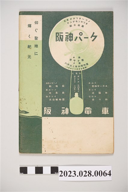 本物件為昭和15年阪神旅遊指南,為1長方形本子,左上處寫有「阪神地方」第18冊,下面則有發行單位為社團法人日本旅行協會,本子內記載阪急電車路線圖、大阪名產以及動物園、水族館、植物園、遊樂園等景點介紹。
