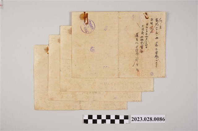 本物件為昭和15年3月29日臺灣總督府交通局團體乘車券,為1黃色長方形紙張,共4張,上面寫有「臺灣總督府交通局團體乘車券」,為來回票,上面記載乘車時間為3月到4月,乘車區間包含臺南、基隆、神戶、山田、奈良、釜山、平壤等許多地區。