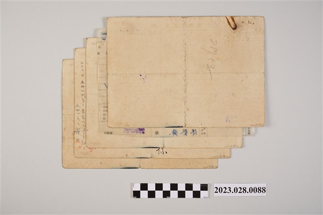 本物件為昭和16年臺灣總督府交通局團體乘車券券,為1黃色長方形紙張,共5張,上面寫有「臺灣總督府交通局團體乘車券」,為來回票,上面記載乘車時間為7月至8月,乘車區間包含高雄、基隆、神戶、新京、奈良、釜山、吉林等許多地區。