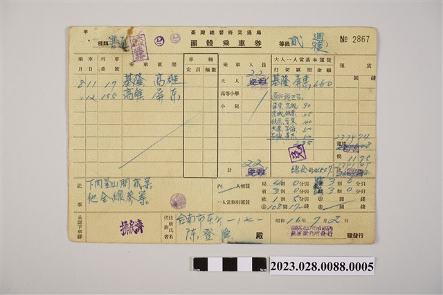2023.028.0088.0005 昭和16年臺灣總督府交通局團體乘車券5