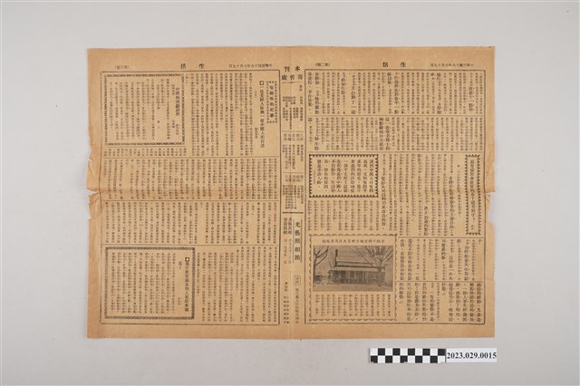 1.本物件為中華職業教育社發行《生活》第二卷第三十三期,正面寫有「本期目次」記載當期文章題名,正面寫有文章「怎樣恢復我們的民族精神」、「聽中山先生的生活」等內容;背面為文章與廣告,寫有讀者通訊專欄「生活有許多好意思」,並刊登中華鐵工廠、工商銀行、中華職業教育社等商家廣告;翻開內頁為文章,文章包含「最有益於全世界的八十歲老頭子(中)」、「為什麼有職業的人要厭棄職業?」、「一位美國人嫁與一位中國人的自述(十七)」等。2.《生活》發行時間自民國14年(1925)10月11日至民國22年(1933),旨以用生動的文字、趣味的題材來暗示人生修養,民國15年(1926)10月鄒韜奮接手主編後,開始宣傳抗日思想。