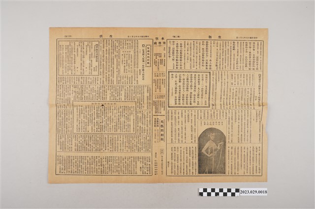 1.本物件為中華職業教育社發行《生活》第二卷第三十六期,正面寫有「本期目次」記載當期文章題名,正面寫有文章「什麼是真平等?」、「聽中山先生的生活」等內容,另有一插圖「穿著大衣的中山先生照片」;背面為文章與廣告,寫有讀者通訊專欄「弄得不不下」,並刊登中華鐵工廠、工商銀行、中華職業教育社等商家廣告;翻開內頁為文章,文章包含「從醫學上觀察日本人的現代生活」、「譯餘閒談中的閒談」、「一位美國人嫁與一位中國人的自述(二十)」等。2.《生活》發行時間自民國14年(1925)10月11日至民國22年(1933),旨以用生動的文字、趣味的題材來暗示人生修養,民國15年(1926)10月鄒韜奮接手主編後,開始宣傳抗日思想。