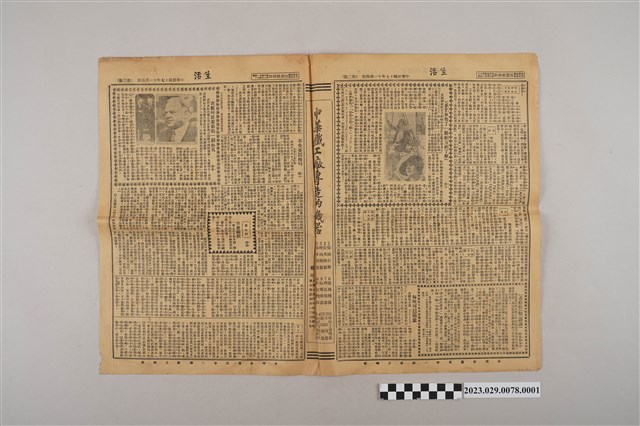 1.本物件為中華職業教育社編輯《生活》第三卷第五十一期,正面寫有「本期目次」記載當期文章題名,正面文章為小言論專欄,本期題目為「痛念亡友雨軒」,另刊載文章「一個充滿科學精神的辦事機關」;背面為文章與廣告,寫有「一週鳥瞰」等文章,並刊登科達西藥廠、福來電器行等商家廣告;翻開內頁為文章,文章包含「每晚可以隨意」、「不免要說幾句」、「在歡呼民眾前的一副面孔」等。